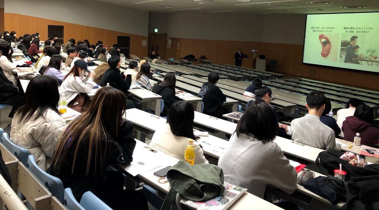2024年度は看護学科と臨床工学科を中心に65名程が受講し、全2回の講義を経て、自己分析に関するワークと作文課題「志望理由書」に取り組みました。提出した課題は、個別添削を受けられることが本講座の特徴です。講師からのコメントは就活対策に大いに参考になるようです。