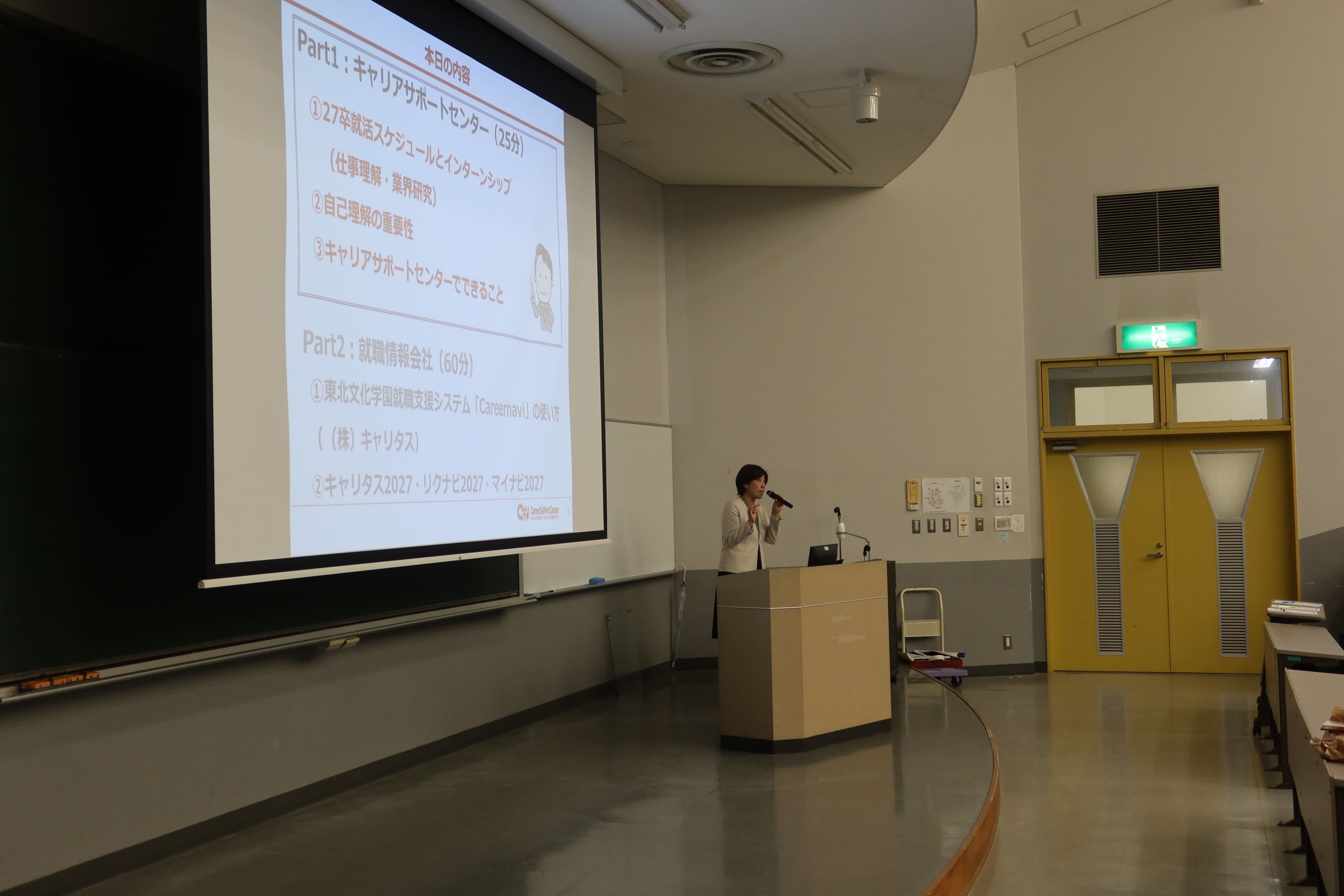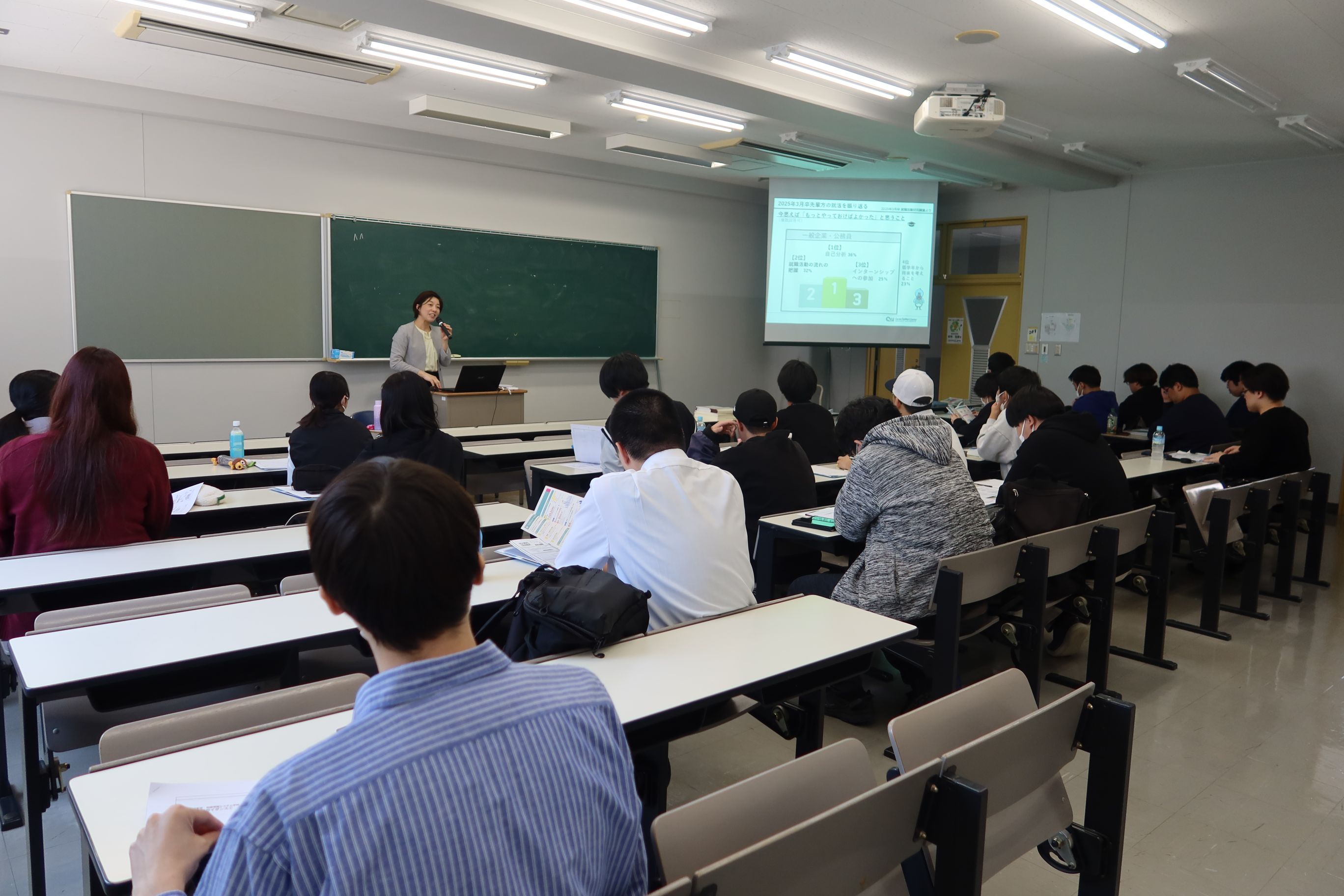 2025年4~5月にかけて、民間企業や公務員を目指すこととなる4学科(現代社会、経営法、知能情報システム、建築環境)の3年生を対象に『インターンシップ?仕事体験準備ガイダンス」を実施しました。昨今の就職活動早期化もあり、3年生夏季休暇中に広く業界理解や企業理解を深める活動が重要になっています。大学としては就職情報サイトや合同イベントを上手く活用し、視野を広げて企業との接点を増やすための主体的な行動を促しています。また、時間に余裕がある今のうちに自己分析を進め、価値観や強み弱みの整理も並行して行っていくことも大切であるため、適性検査や自己理解ワークも実施しました。