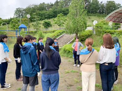 公園に着いたら、ミーティング。K先生、気合入っています!