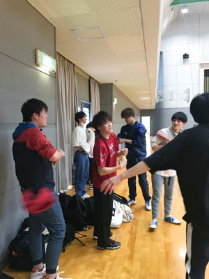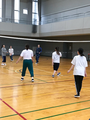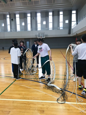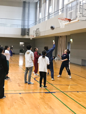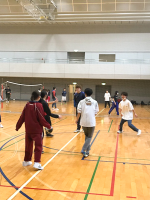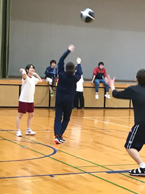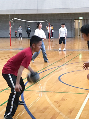 本校は、専門学校では珍しい本格的な体育館があります。学生のスポーツサークルも多く、この日はバレーボールとバスケットの用具を借りて2種類のゲームを楽しみました。