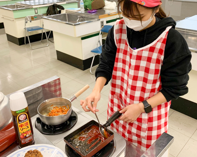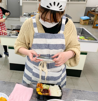 今回の調理実習は、今後予定されている病院実習で毎日お弁当を持参することになるため、その練習に。