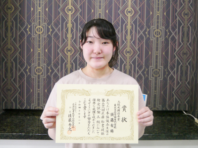 今回の受賞者、2年生の宮本さんは両方の検定試験において成績優秀賞を受賞しました。塗さんは、1年次の3級でも受賞しています。須藤さんも、日ごろの勉強の成果を発揮してくれました。3名とも今後のますますの活躍を期待しています。
