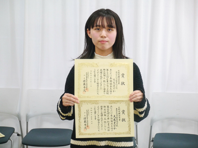 過日行われた医事コンピュータ技能検定3級と医療秘書技能検定3級において、医療秘書科1年の高橋さんと医療情報管理科1年の大友さんの2名が成績優秀賞を受賞しました。