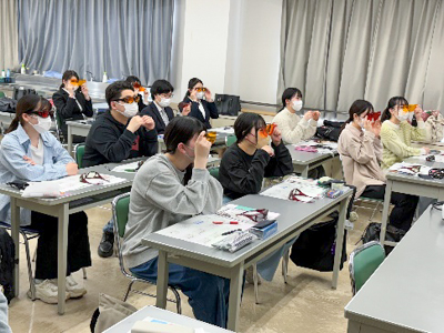 前半はレンズの基礎を学び、累進レンズを装用しての体験。