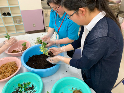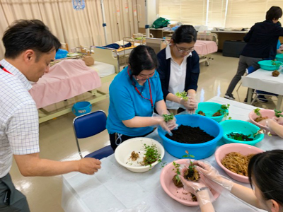 介護福祉士の支援対象となる要介護高齢者の方の生活課題を考えることを目的に、『園芸を趣味にしていた山田さん。施設でも楽しんでほしいんだけど…』と題し、苔玉づくりを体験しながらレクリエーション活動について考えました。