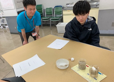 『住宅の敷地をどのようにして選ぶ?』と題して、「液状化現象」はどういうメカニズムでその現象は起きるのか、簡易実験キットを使用し体験しました。