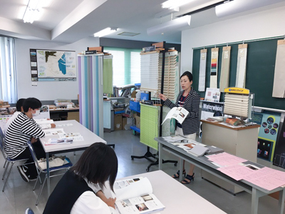インテリア科では、生活に身近な窓装飾をテーマに『和室と洋室の続き間、どうコーディネートする?』と題し、プリーツスクリーンを中心に、スタイルも機能も様々な窓装飾に触れて学びました。