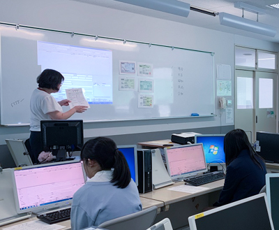 日本医師会の認定カリキュラムを中心に、医療事務?医療秘書の仕事の内容を理解し、診療情報管理士の仕事についても学びました。実習では、医療秘書実習室で本物のカルテを使い、リアルな現場の様子を実践的に体験しました。