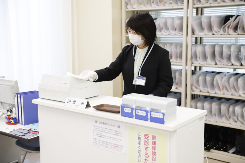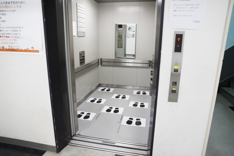 各階には消毒液を設置しています。