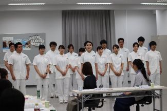写真は3年次生による臨地実習の指導者の方々へのご挨拶です。11月から臨地実習が始まります。