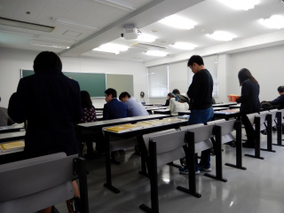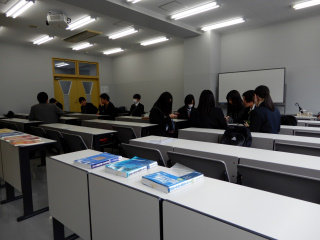 全体会開式までの時間を利用して、教科書や参考書を手に取って内容を確認します。