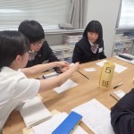 その後、先輩方や先生から角度計の使い方を教えてもらいながら、一緒に手指の関節可動域を測定しました。今回の模擬授業は、1年生後期に開講される作業療法評価学演習の一部分です。入学後は少しずつ専門的な勉強をしていきます。