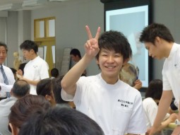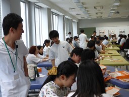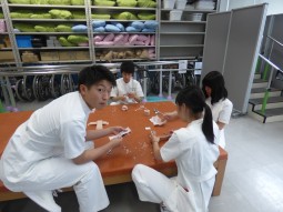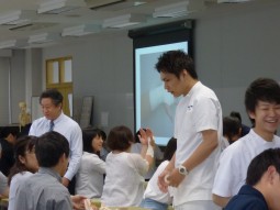 実際にテーピングを巻くのは、少し難しかったかもしれませんが、少し緊張した面持ちで先輩学生の指導を聞いていた姿が、初々しくてすてきでした。