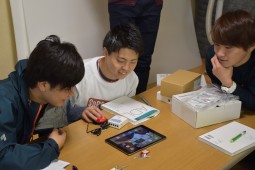 スイッチ一つで,機器を動かす実習をしています.最近では,タブレット端末にも同様の機能が搭載されており,体験学習を行っています.
