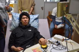 環境制御装置の説明を受けて勉強しています.重度な障害の方でも自立して生活できるようにする機器です.残存している機能を使って,スイッチ一つで,ベッドや照明,電話,テレビ,エアコン,パソコン等を動かします.