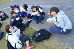 先輩方が作ってくれた芋煮、それとおにぎりをいただきます。