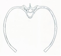 D先生にお目にかかる前,骨学実習で椎骨をスケッチしていた頃,なぜ腰椎だけ「横突起」がなくかわりに「肋骨突起」になるのか(つまり上の③と④の疑問)ということが不思議であった.D先生のおかげで「形の意味」を優先するようになった私は,再び「頸椎」「胸椎」「腰椎」「仙椎」を並べて観察してみた.観察していたある時,「魚の肋骨」が私の頭をよぎり,その瞬間すべてが氷解した.「なるほど!「横突孔」も「前結節?後結節」も「肋骨突起」も「副突起」も「乳頭突起」も,「肋骨」の形状を考えればすべて合理的に説明できるんだ!」と.この瞬間,私は小躍りしたいぐらい喜んでいた.その時の私の考え方は次のとおりである.