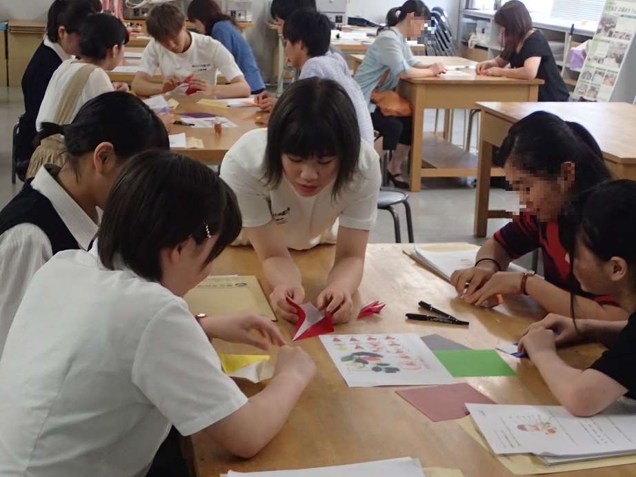 「子どもの成長と発達に生かす!作業療法」のテーマのもと、子どもの写真を映しながら講義を行ないました。授業の後半は折り紙を使用し、『作業活動を行うとどんな治療効果があるのか』について、参加者のみなさんと一緒に分析しました。