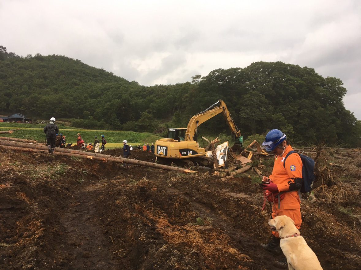 教員の社会貢献:「北海道胆振東部地震」の行方不明者捜索のため、災害救助犬が出動してきました!