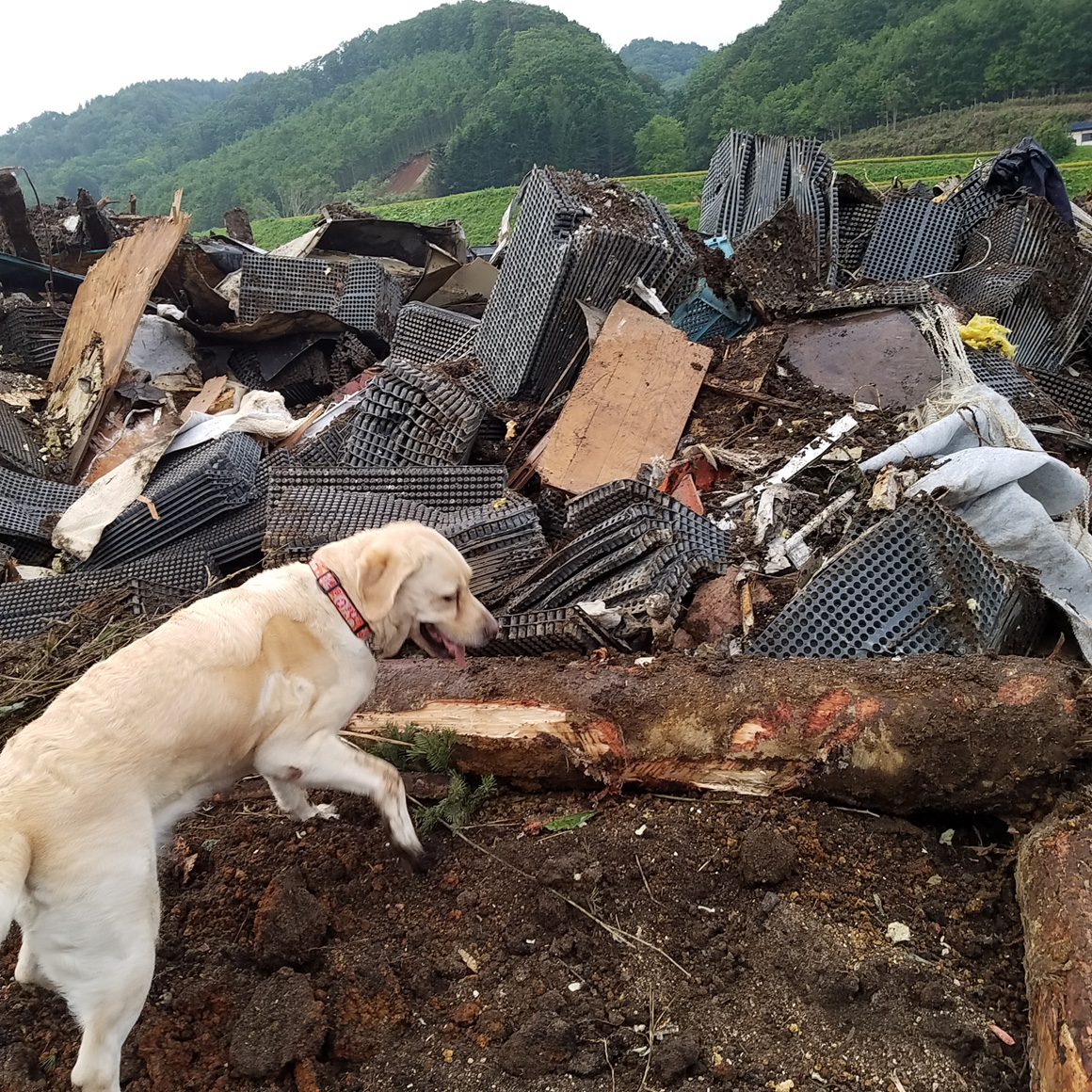 2018年9月6日未明に発災した「北海道胆振東部地震」による行方不明者の捜索のため、総合政策学科の岡惠介教授と災害救助犬のルカが、厚真町で捜索活動を行ってきました。
