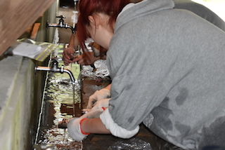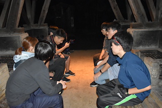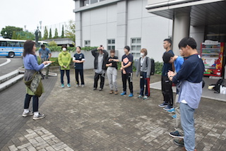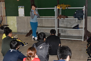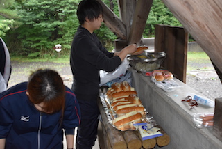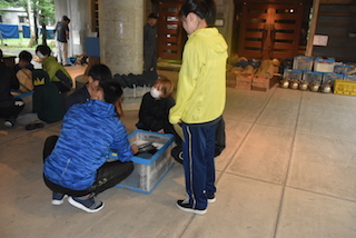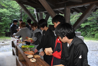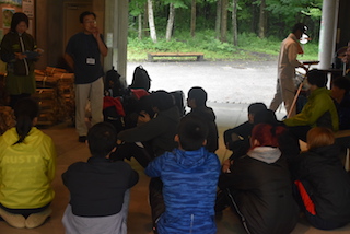 野営場に到着すると早速所員の方からの説明と、備品の確認です。活動班ごとにチェックをします。