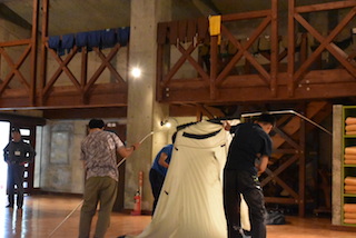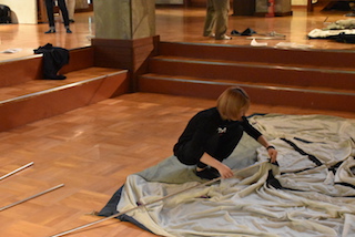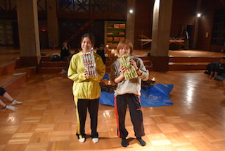 毎年恒例の、TBGUテント設営スピード選手権も雨のため室内で行いました。