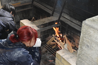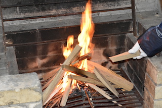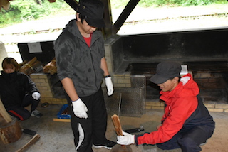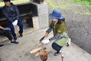 続いて薪割りのレクチャーと火付けです。今年は薪割りと火付けのレクチャーを