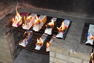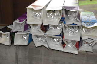 例年、牛乳パック同士を近づけすぎて火が大きくなり、黒焦げになるのですが、