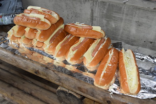 これは朝食のホットドックです。こんなに山積みになっているのは???