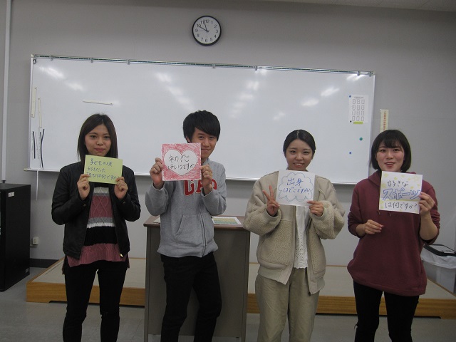 はじめにグループごとに学生が準備した「自己紹介ゲーム」で盛り上がり、リラックスした雰囲気になりました。