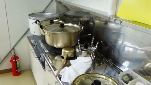 配置、飾り付け、トン汁作りなど、分担して準備をします。
