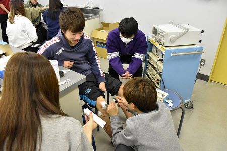 生理学実習は,2年次後期に開講される実習科目であり,生理学で学んだ知識をもとに,心電図や誘発筋電図といった電気生理学的な検査や,視覚や関節覚に関わる実験実習などを行い,生理学の知識を深めるとともに科学的な目を養うことを目標とします.