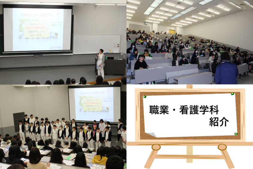 看護師?保健師の職業紹介と看護学科の特徴紹介を午前中に行っています。
