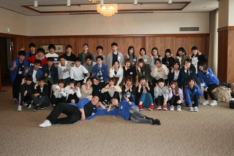 2日間一緒に過ごした新入生と学生リーダーのみんなで記念撮影!!