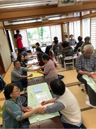 当日はあいにくの雨でしたが、20名程の国見地域の方が集まる中、アロマセラピーとは何かを簡単にご説明し、アロマハンドマッサージを参加者お互いに行っていただけるよう