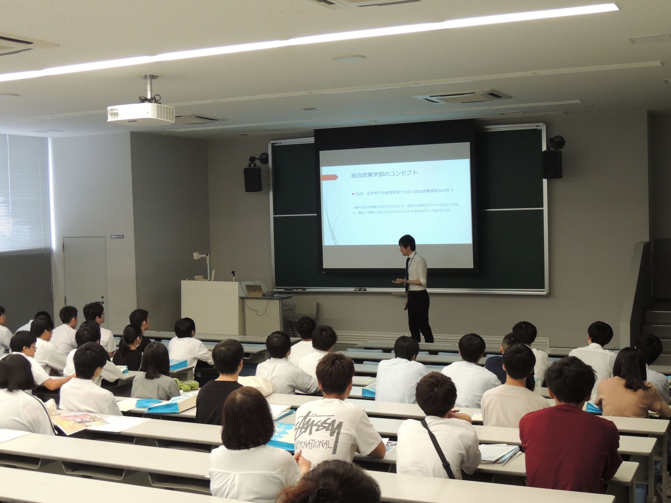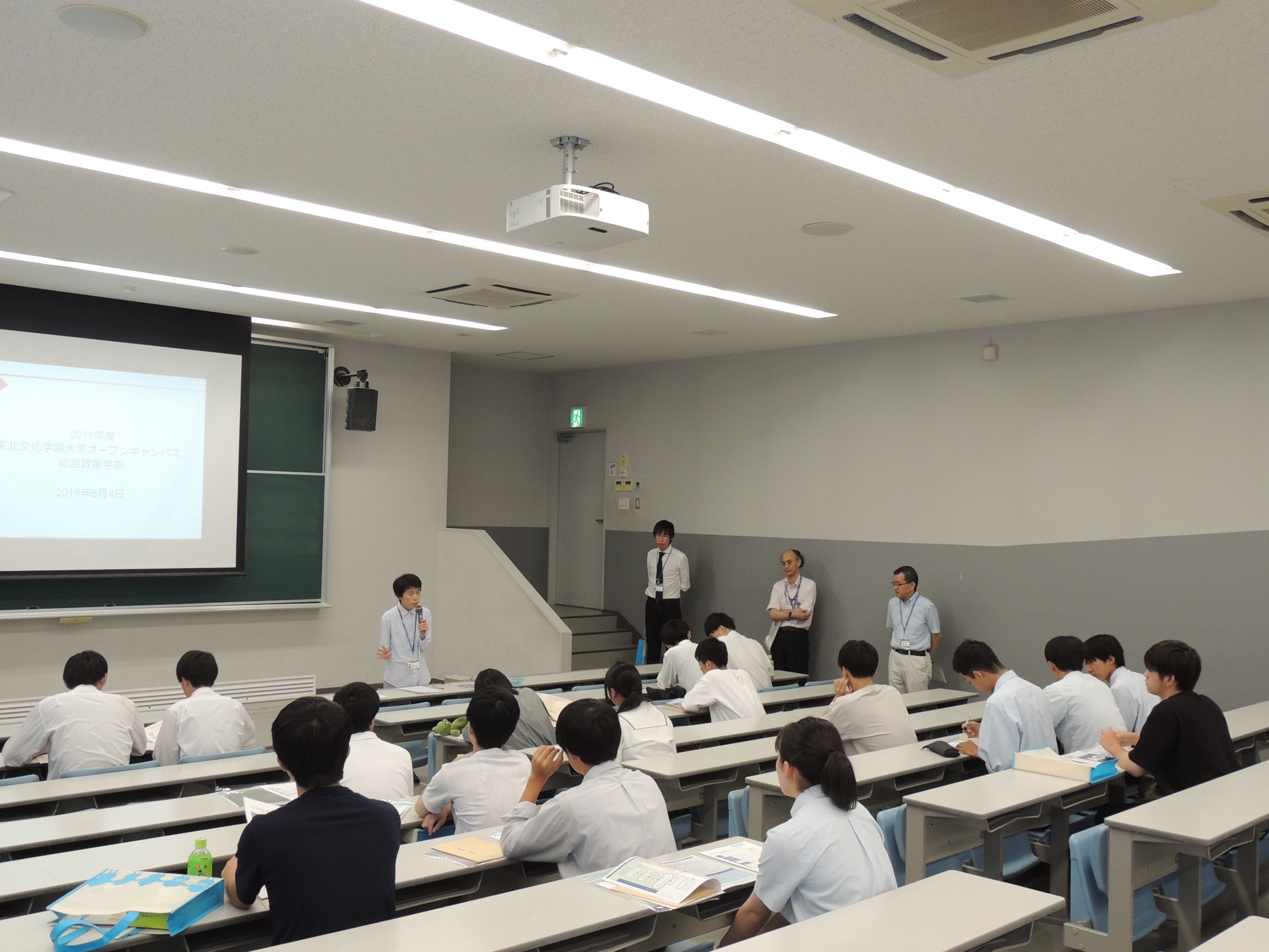 8月4日(日)に総合政策学部の2019年第4回オープンキャンパスが開催されました。当日の参加者が40名で、猛暑の中たくさんの高校生、保護者の方々にご参加頂きました。
