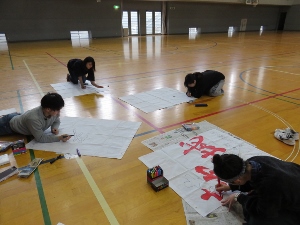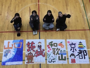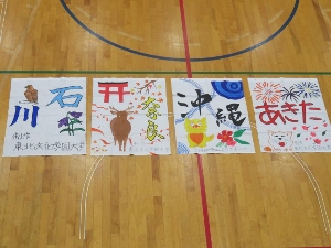 宮城県でレクリエーション指導者を養成している大学、短大、専門学校で歓迎旗を製作しました。
