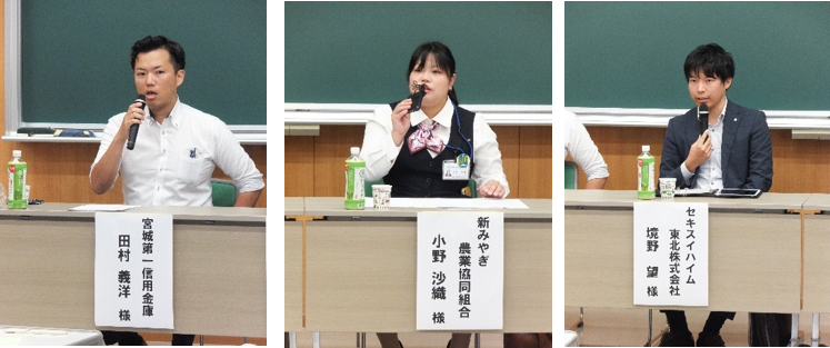 間もなく本格的な就職活動を迎える3年生が参加して、卒業生の話を熱心に聞き入っていました。