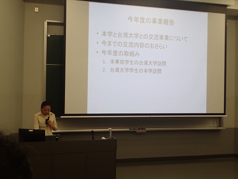 その後、本専攻で取り組んでいる台湾大学との交流について、報告会を行いました。