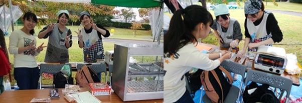 今年は、言語聴覚学専攻2年生による出店でおいしいチュロスを作りました。味はチョコ、シナモンシュガー、そしてシュガー(シナモンが苦手な方でも大丈夫)の3種類でした。お蔭様で大変好評!完売しました。