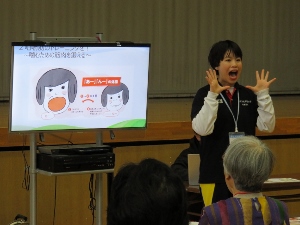 学生は保健福祉学科3年生の授業でかいこうされており、前期の介護予防論で知識を学び、実践として後期の介護予防実習という授業のなかでこの講座が開かれます。