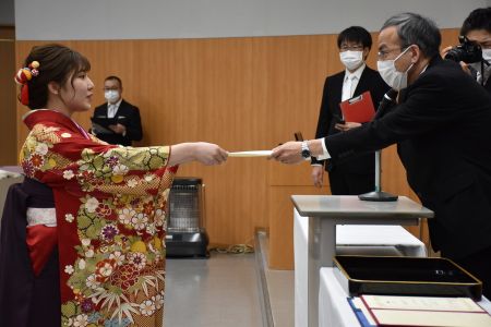 学生一人一人に学位が授与され,その後,各種の表彰を行いました。