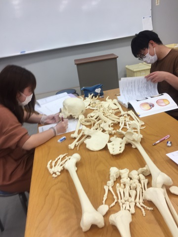 授業は、解剖学と解剖学実習でした。標本など3次元で骨を見るのは初めてで、担当教員の指導の下、スケッチや名称の確認など、必死に取り組みました。