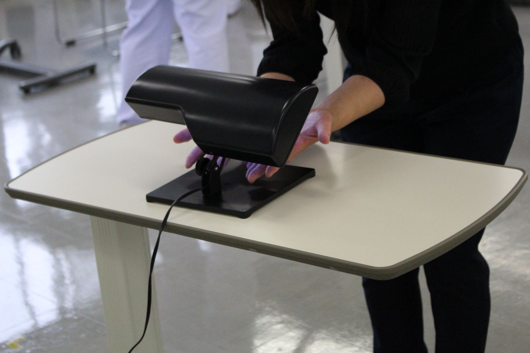 感染予防が重要視されている昨今ということもあり、今回の看護学科の企画では、正しい手洗いと手指消毒の方法について体験していただきました。