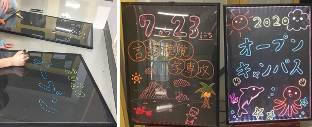 また、今日も素敵な掲示を描いてくれました。言語聴覚学専攻のオープンキャンパスは、これが無いと始まりません。
