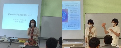 模擬授業は、「子供が言葉を話すまで」(藤原加奈江)と「左の脳 右の脳」(八鍬央子)でした。皆さん、熱心に聞いて下さいました。