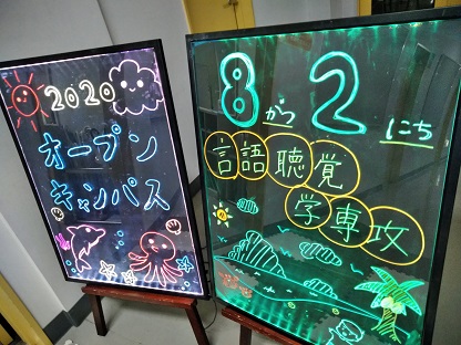 支援学生の二人がいつものように素敵な掲示板を描いてくれました。やっぱり言語聴覚学専攻のオープンキャンパスは、これが無いと何かが足りない気がします。