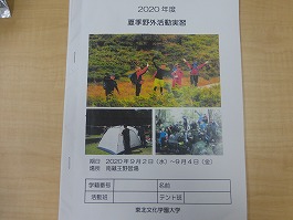 2020年9月2日(水)~9月4日(金)まで夏季野外活動実習に行ってきました。