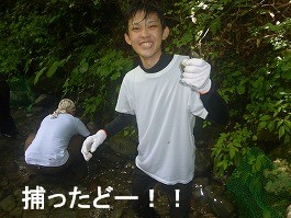 その後ニジマスを各自で捕まえ、さばいて、昼食にします。