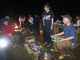 夕飯はバーベキューです。毎回の火おこしは、先生の手を借りながらもだんだんとなれてきた様子です。